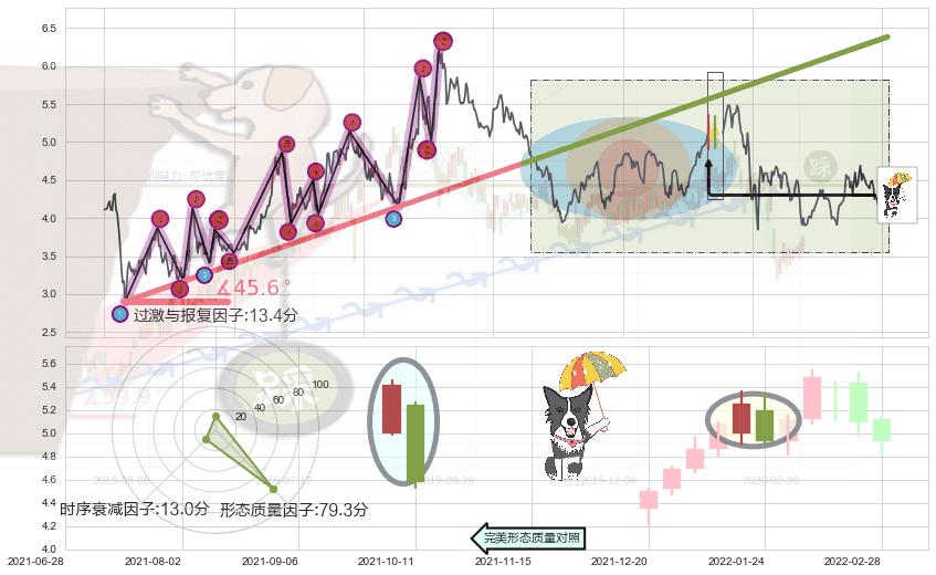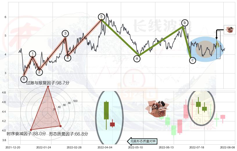 ♘ 阻力价格位5.19,可信任强度95.02%,距离最后交易2022-08-12形成的收盘价格4.33相差 +19.92%
