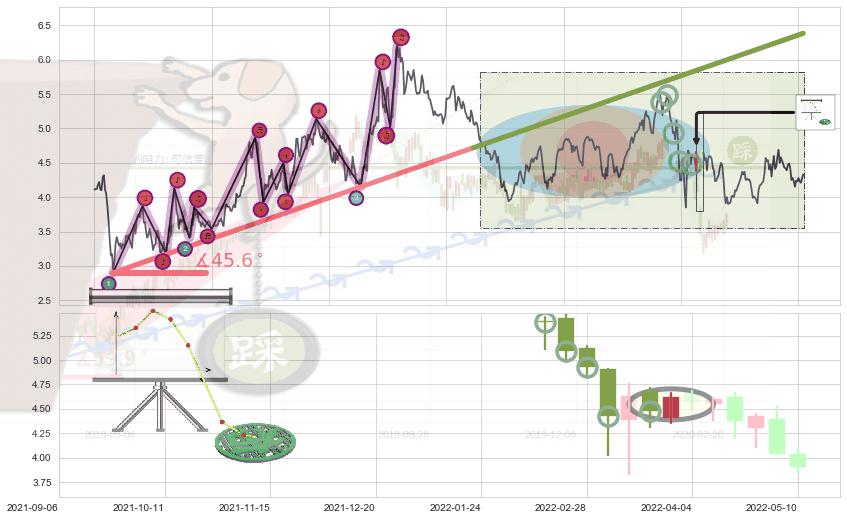 ➣ 【仅预测突破】最后价格:4.33与预测突破价格:4.62→【空间临近】后续最小【整理】第一目标价格→(2022-11-03: 8.16 )