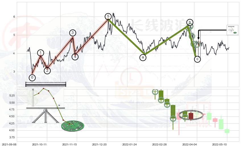 ➢ 循环浪继续向上【最低】位置(2023-05-19, 5.48),匹配聚类样本比例28.48%, 可能性概率11.89%