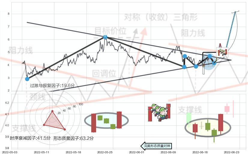 ➣ 早晨之星(黎明之星) + 上升对称三角整理临近阻力猜想转换支撑上涨信号叠加后【目标达成率】中等,【看多】信号叠加【存续影响中等】