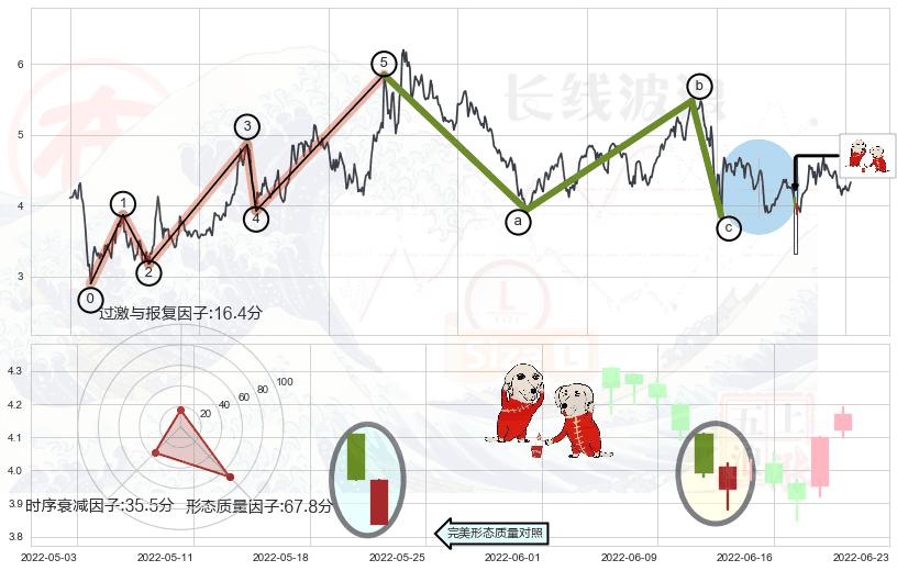 ➢ 🕰 价格走势在2022-06-06至2022-06-20期间形成早晨之星(黎明之星),残存影响值:4.23