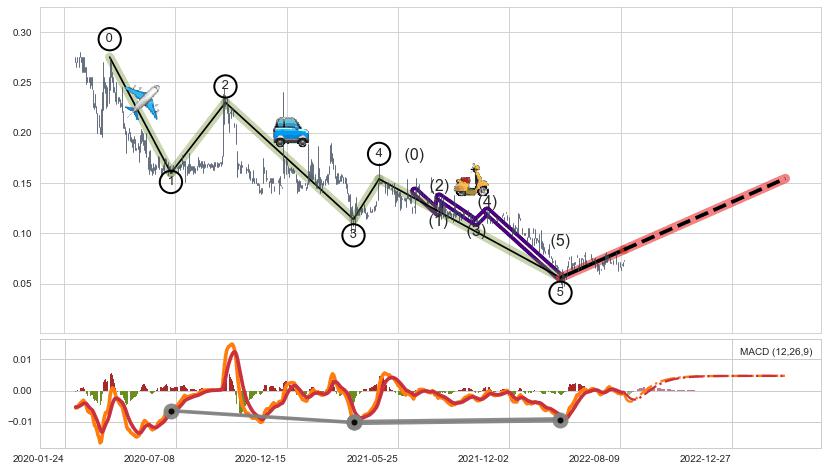 ➣ 上涨螺旋桨形态 + 波浪理论下跌浪:浪5反弹拐点信号叠加后【反向回撤率】极低,【看多】信号叠加【存续影响极大】