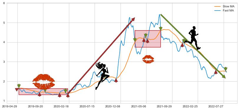 2021-07-28至2022-08-08 慢线与快线呈空头排列, 慢线与快线接触少,无缠绕