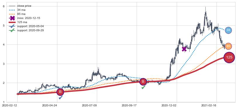 📝 多条均线形成死叉后走势最低价格达到: 2.370