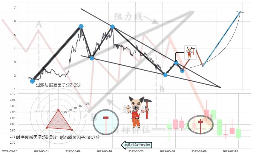 ➢ 🕰 价格走势在2022-07-07至2022-07-07期间形成锤头线(锤子线),残存影响值:3.44