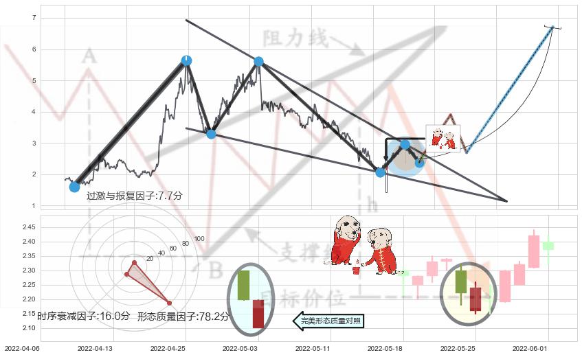 ➢ 🕰 价格走势在2022-06-02至2022-06-02期间形成单针探底(定海神针),残存影响值:2.00