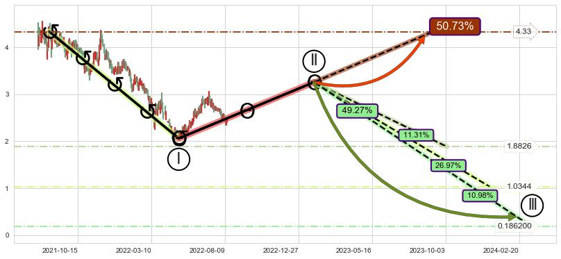➣ AI预测: 假定反转启动后, 第❶目标位置(2023-06-22, 3.203)