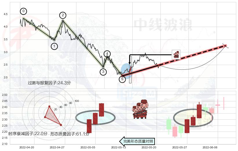 ➢ 🕰 价格走势在2022-06-24至2022-06-30期间形成上升三部曲(升势三鸦),残存影响值:3.86