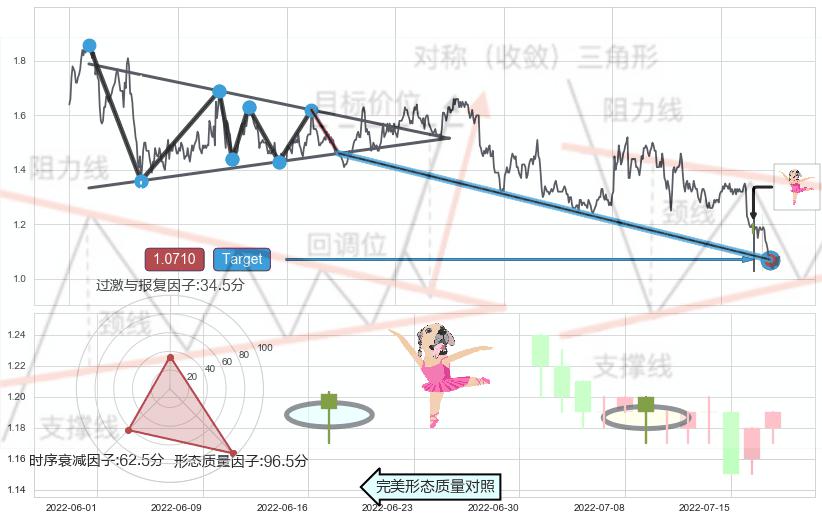 ➢ 曙光初现形态 🔜 下降对称三角整理target支撑拐点上涨 综合量化分数:50.92 【中性】