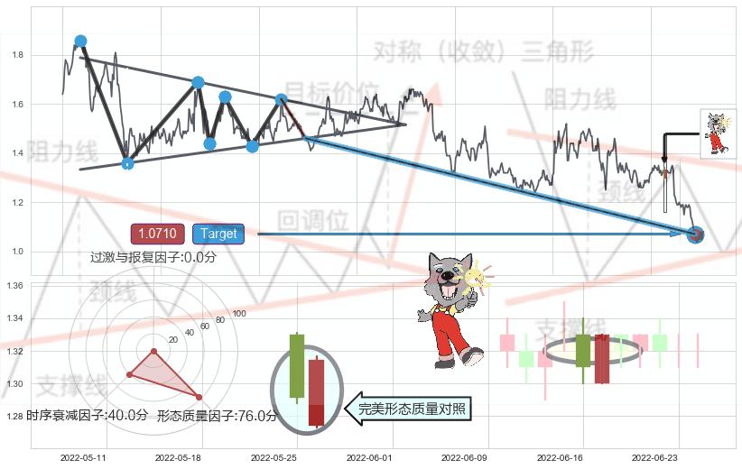 ➢ 【卖1】: 激进型 卖点→(2022-06-30: 1.2400 )形成突破下降三角形整理【整理】形态