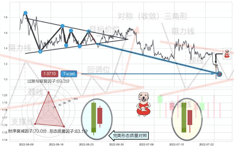 ➣ 【已达成】最小【整理】第一目标价格→(2022-08-01: 1.0710 ), 后续继续【整理】下跌动力依然存在,下跌空间适中