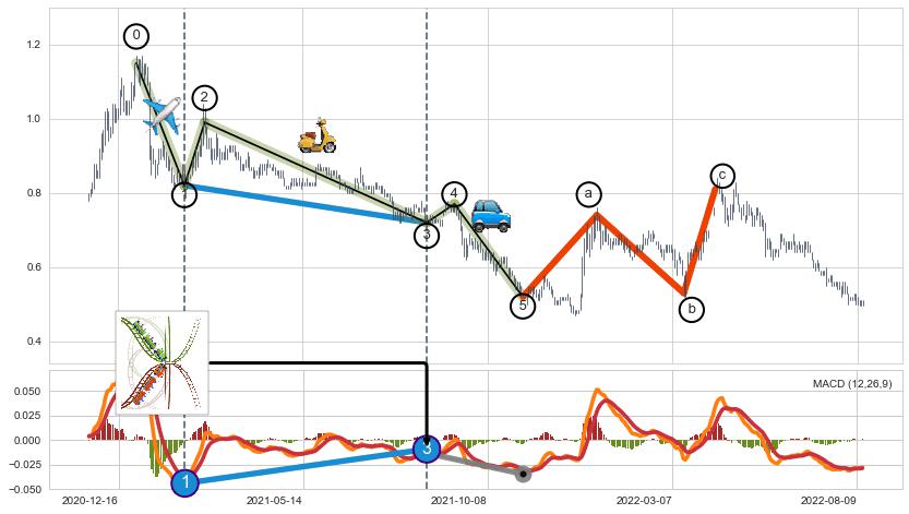 ➢ 波浪理论:猜想达到c点后小反弹终止反转下跌 → 下跌 → 【拐点】临近 → 阶段均值回复结束后继续大周期趋势跟踪