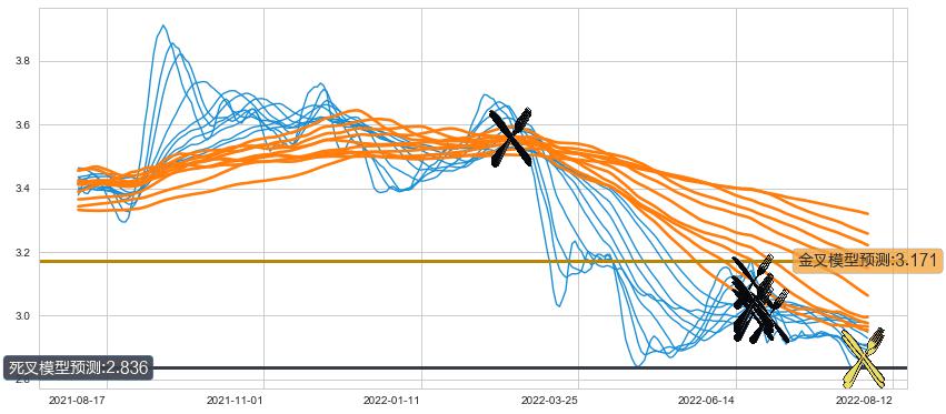 ➢ 60小时均线于(2022-06-21: 3.043)形成【死叉】基于【死叉历史模型】预测死叉后最低波谷价格: 2.745, 死叉后最低价格2.810,尚未达到预测最低波谷价格, 预期继续下跌