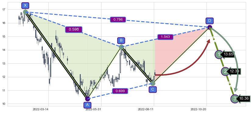➣ 未完成【伽利】形态起点X: 2022-02-10, 已到达C点: 2022-08-10, 预测最终D点: 2022-10-25, 共176交易日