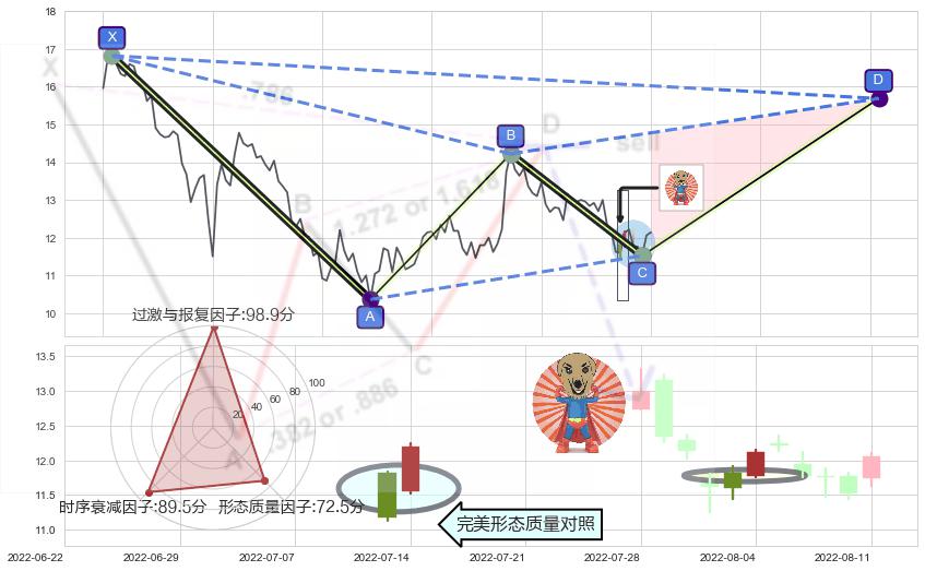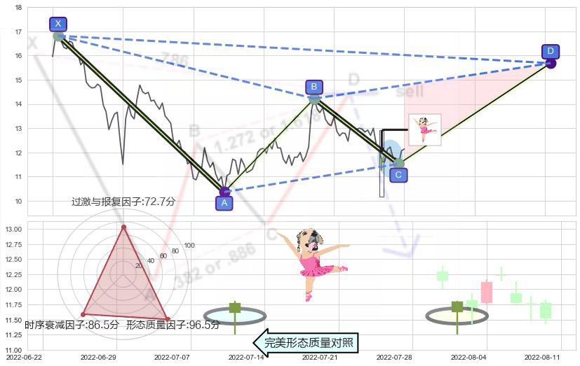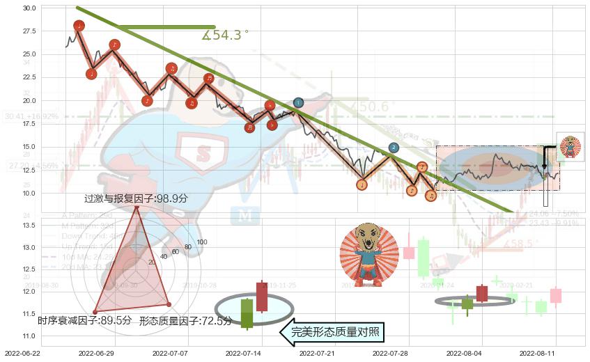 ♘ 支撑价格位11.58,可信任强度86.46%,距离最后交易2022-08-12形成的收盘价格12.14相差 -4.60%