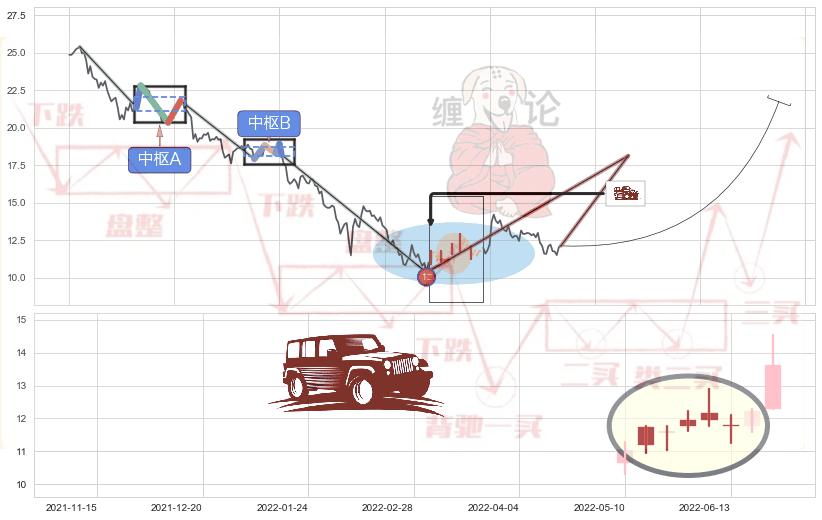 ➣ 缠论买卖点:下降缠中枢AB形成后猜想拐点1买已到达,猜想后续持续拉升(均值回复)
