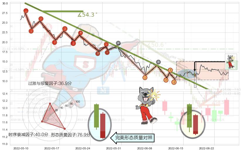 ➢ 2021-08-10-2022-05-19下跌趋势存在反转上涨[机会],其原下跌趋势的阻力位(5.51)已被突破[强支撑信号],原下跌趋势角度: 54.3˚