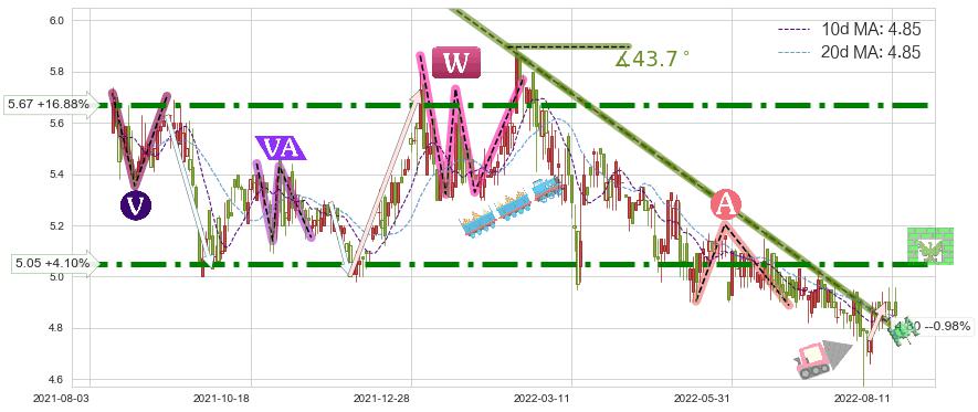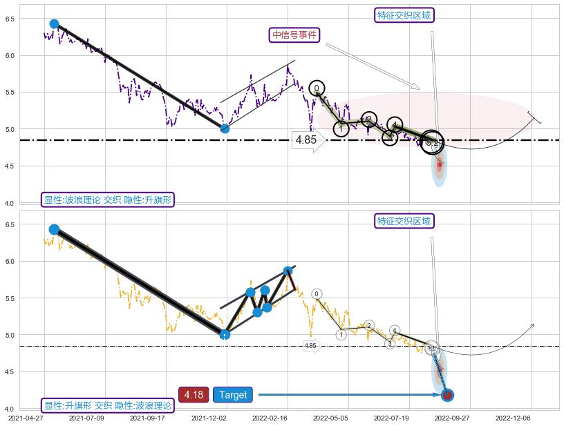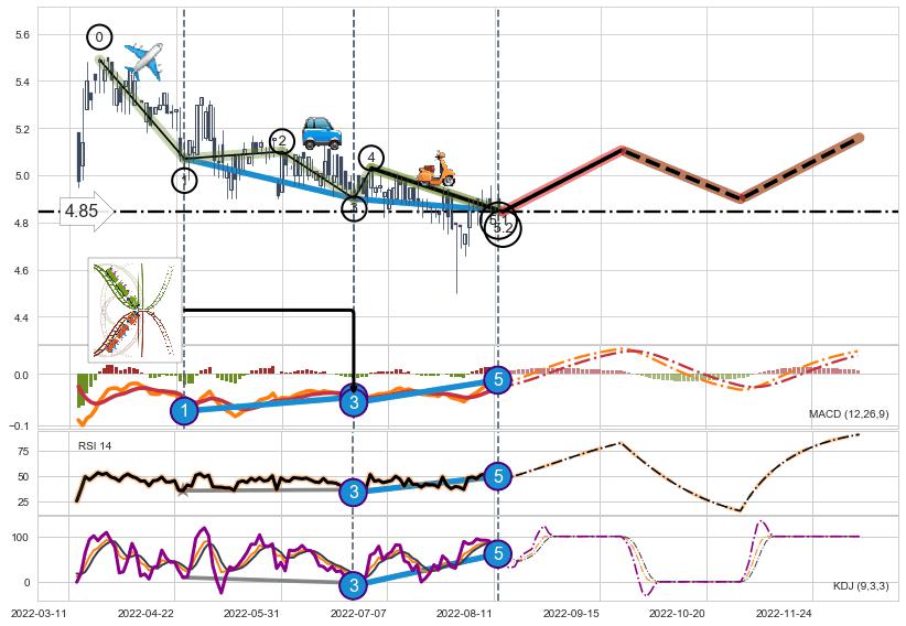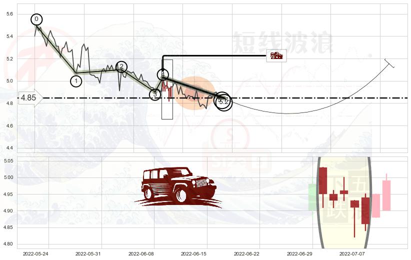 ➣ 5.1: 预测当前第5浪位置(2022-08-12, 4.85),仍然有下跌空间