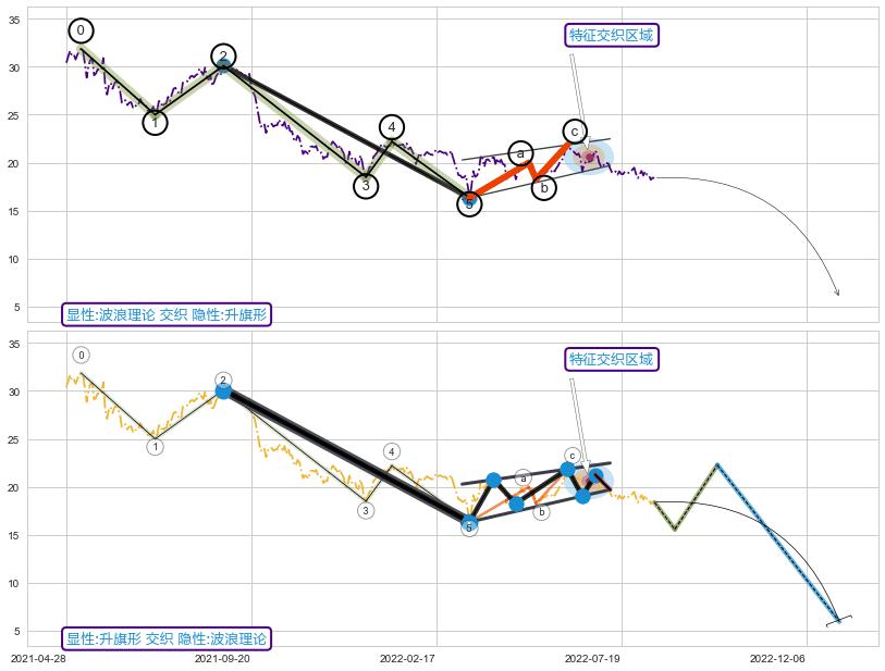 ➢ 波浪理论与升旗形信号事件周期长度级别相同,同周期信号事件