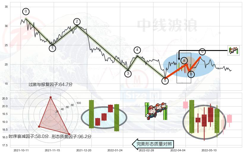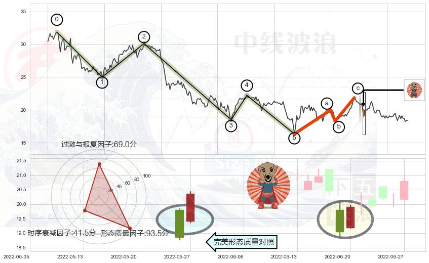➢ 谐波蝴蝶c拐点下跌阻力 🔜 波浪理论c点反弹终止反转下跌 综合量化分数:33.55 【强烈看空】