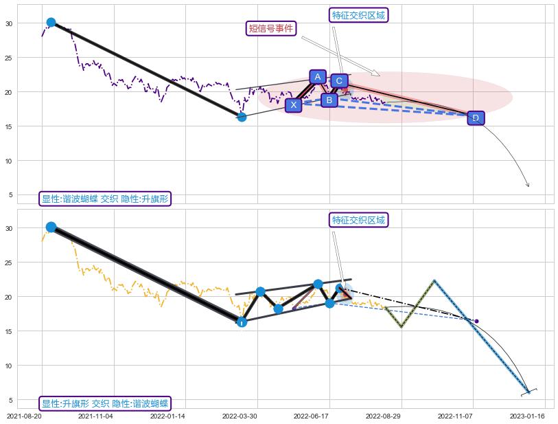 ➢ 谐波蝴蝶属【短级别信号事件】升旗形属【长级别信号事件】长短周期组合信号事件, 短长事件长度比30.95%