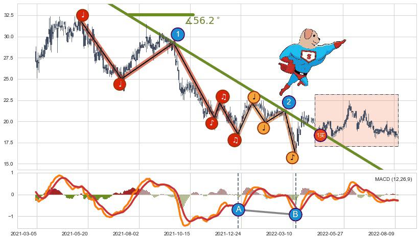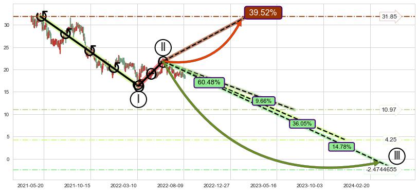 ➣ AI预测: 假定反转启动后, 第❸目标位置(2023-01-27, 21.85)