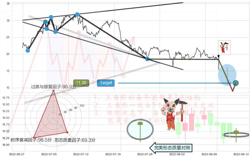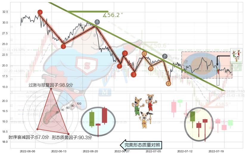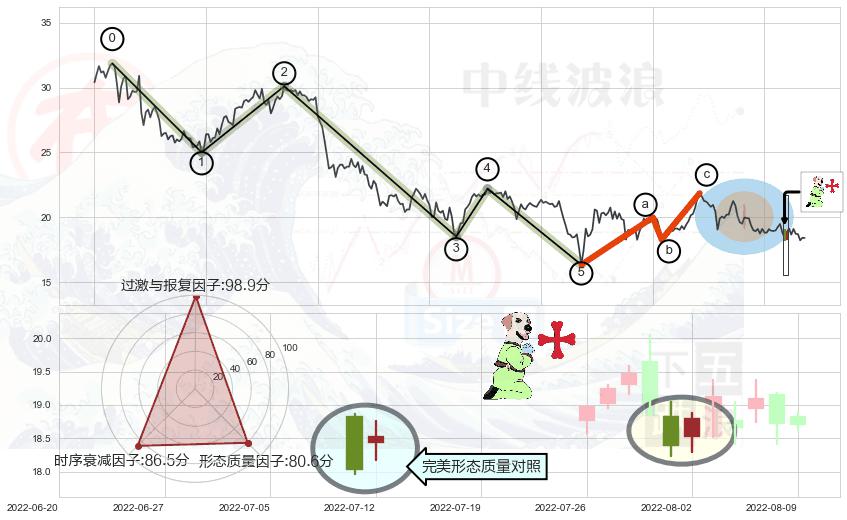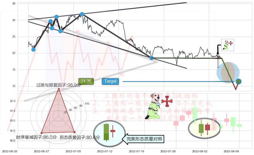 ➢ 🕰 价格走势在2022-07-11至2022-08-08期间形成下降三部曲(降势三鹤),残存影响值:-7.22