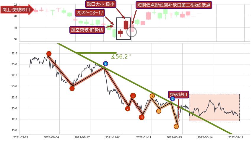 ♘ 阻力价格位21.06,可信任强度76.27%,距离最后交易2022-08-12形成的收盘价格18.40相差 +14.44%