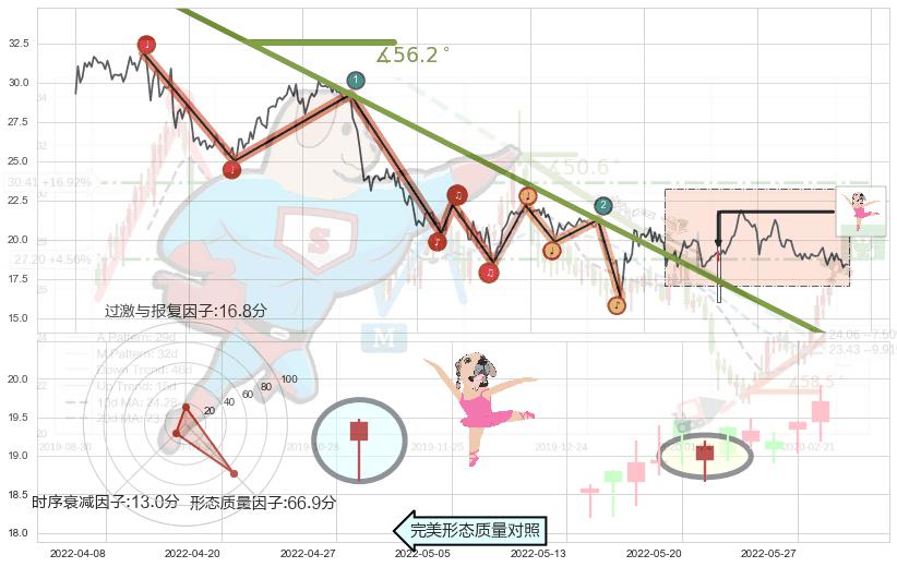 ➢ 2021-04-08-2022-03-31下跌趋势存在反转上涨[机会],其原下跌趋势的阻力位(13.18)已被突破[强支撑信号],原下跌趋势角度: 56.2˚