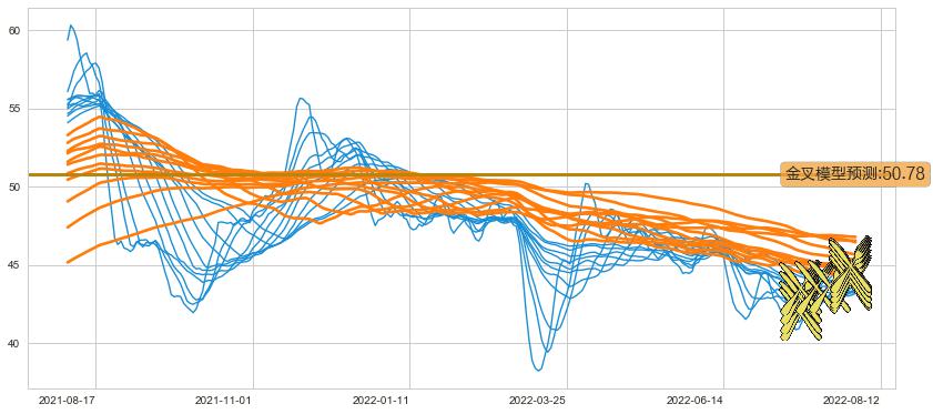 ➣ 70小时均线于(2022-08-10: 44.23)形成【金叉】基于【金叉历史模型】预测金叉后最高波峰价格: 51.39, 金叉后最高价格45.20,尚未达到预测最高波峰价格, 预期继续上涨
