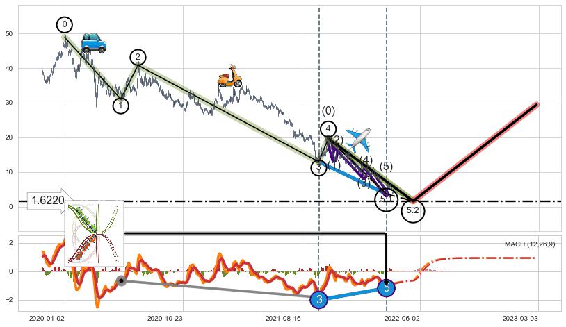 ➣ 波浪理论:猜想即将止跌 → 上涨 →【拐点】浪5临近 → 大趋势均值回复