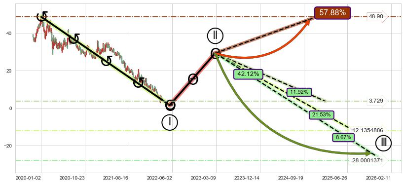 ➢ 高概率大级别循环下跌浪被破坏,反转向上(突破5浪起点)概率57.88%