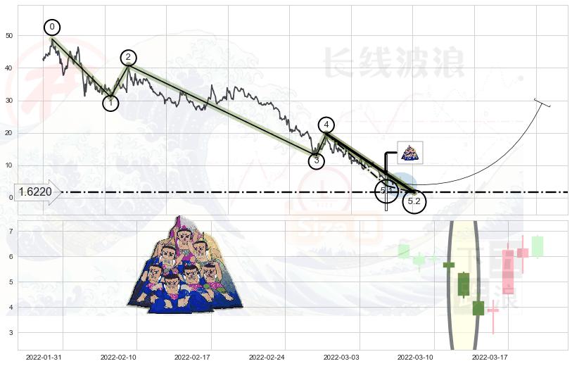 ➢ 5.1: 预测当前第5浪位置(2022-03-15, 3.670),仍然有下跌空间
