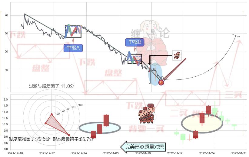 ➣ 上涨螺旋桨形态 + 缠论买卖点下降缠:1买反弹拐点信号叠加后【信号初始稳固度】偏低,【看多】信号叠加【可信度影响降权】