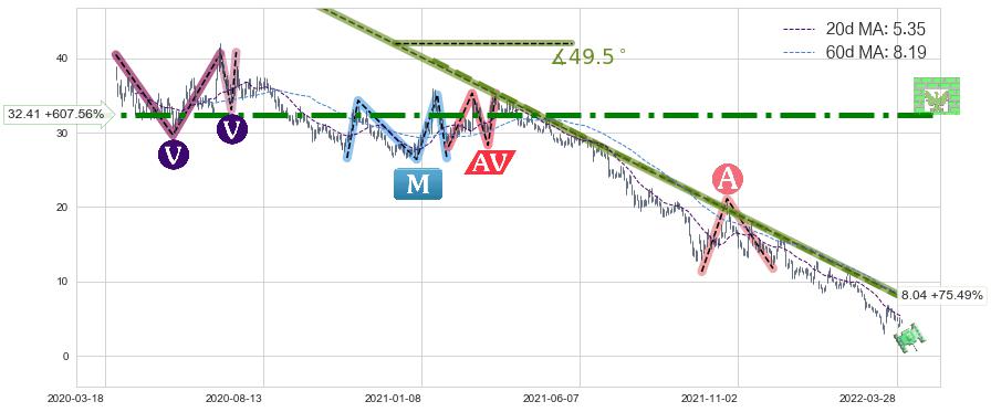 ♘ 阻力价格位32.41,可信任强度85.83%,距离最后交易2022-03-31形成的收盘价格4.58相差 +607.56%