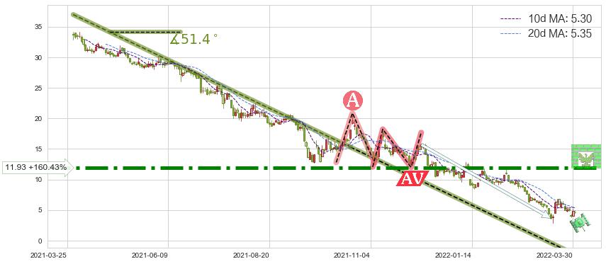 ♘ 阻力价格位11.93,可信任强度87.60%,距离最后交易2022-03-31形成的收盘价格4.58相差 +160.43%