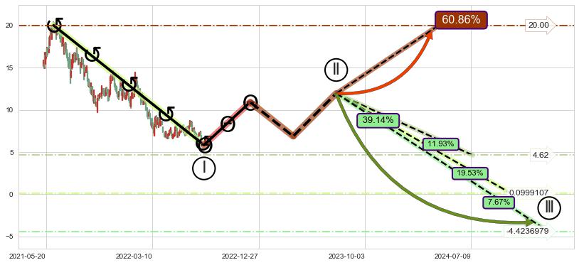 ➢ AI预测: 假定反转启动后, 第❷目标位置(2023-05-26, 14.76)