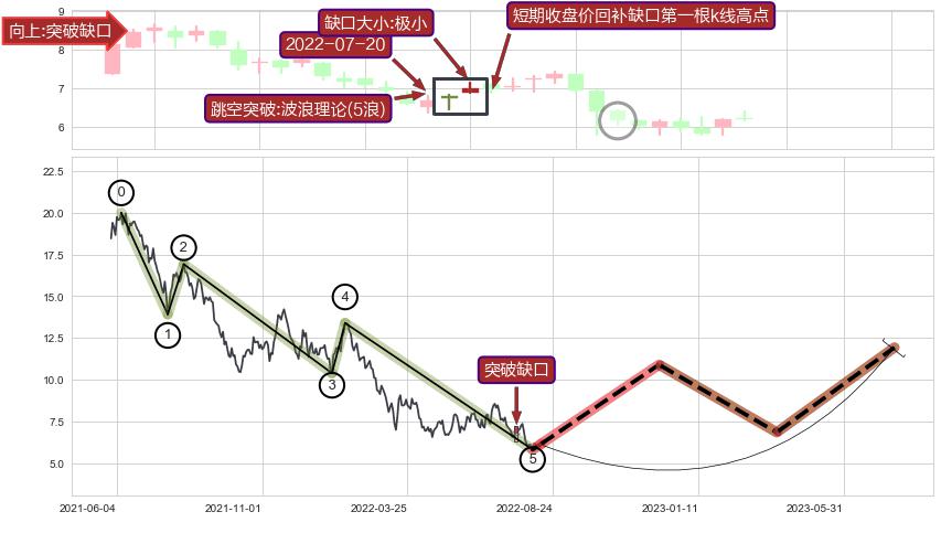 ➢ 收盘价(2022-07-29: 6.15 )→回踩→第一根k线高点(2022-07-19: 6.83 )