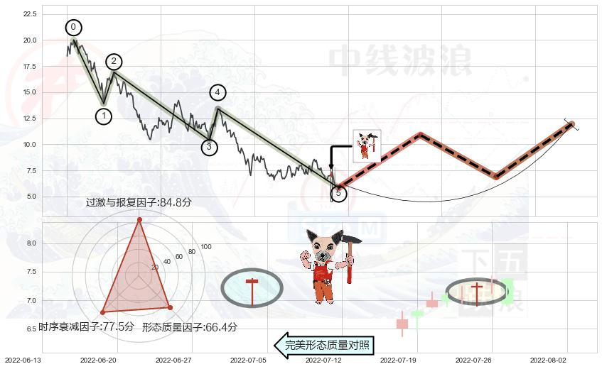➢ 谐波螃蟹临近d拐点上涨支撑 🔜 波浪理论下跌浪:浪5反弹拐点 综合量化分数:58.16 【偏多】