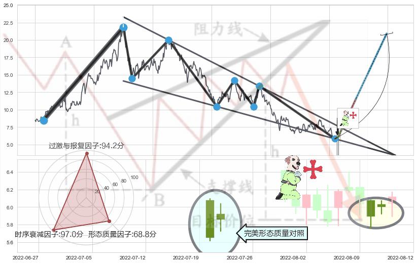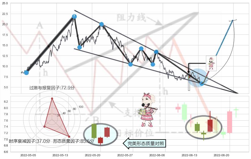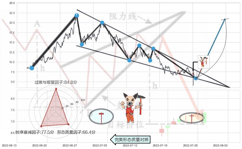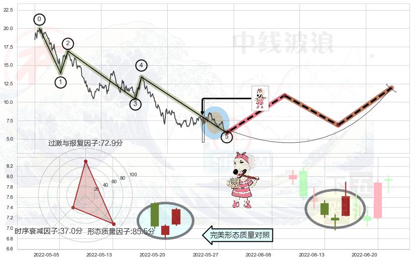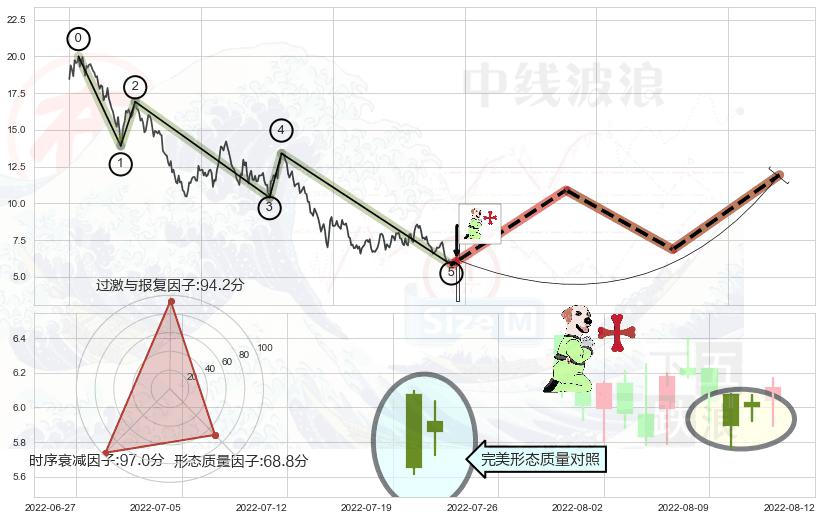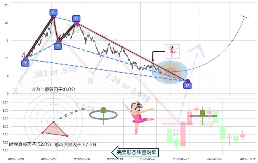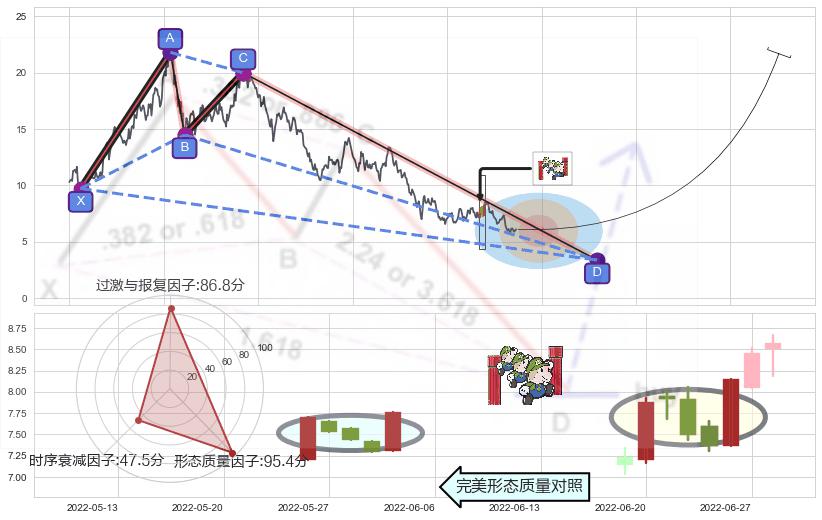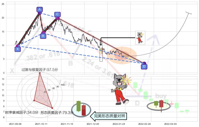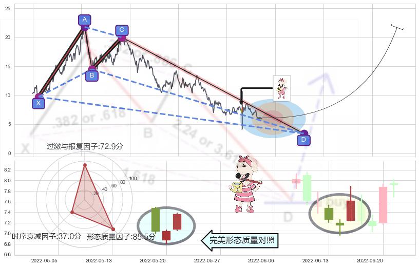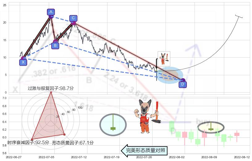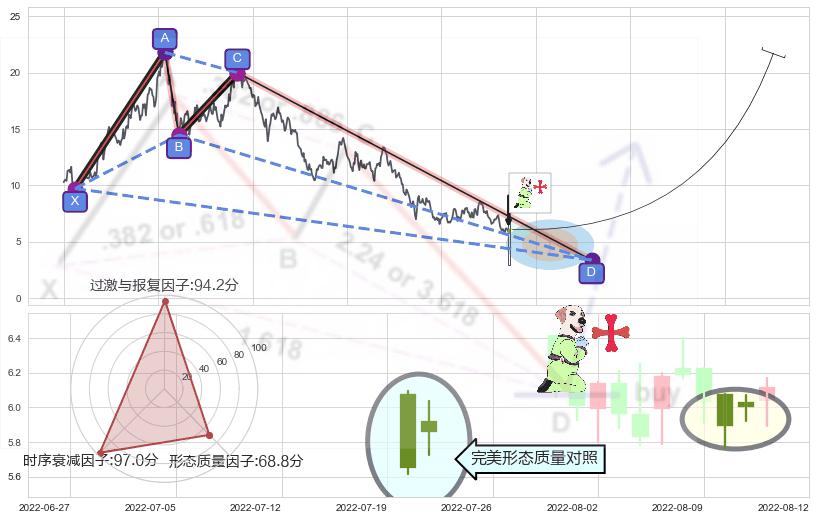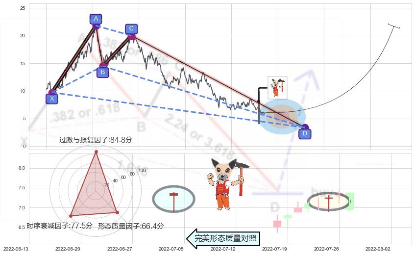 ➢ 曙光初现形态 🔜 谐波螃蟹临近d拐点上涨支撑 综合量化分数:50.45 【中性】