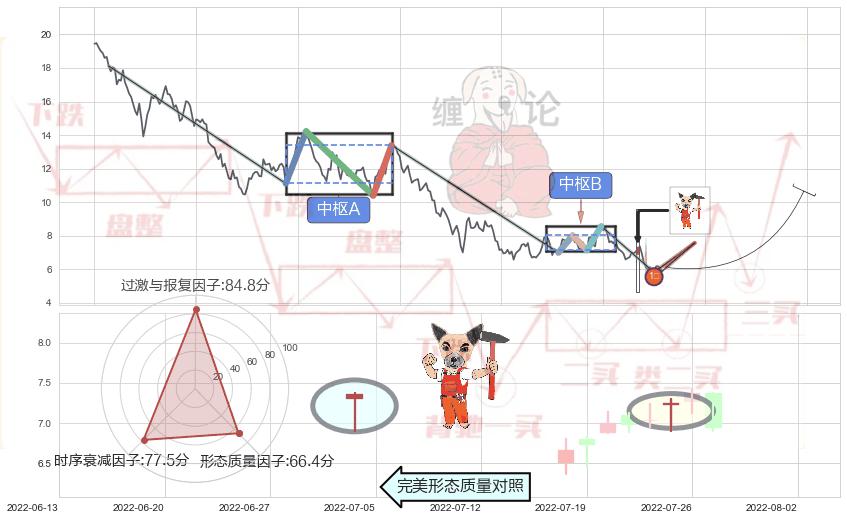 ➣ 【中枢B】:2022-05-27-2022-06-28,中枢由4笔构成,共22交易日, ZG=8.02, ZD=7.14
