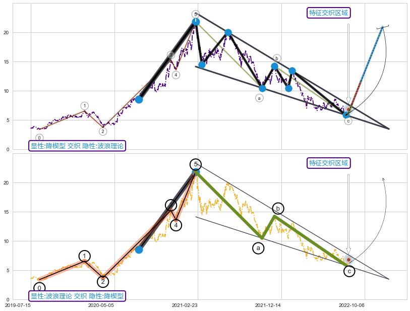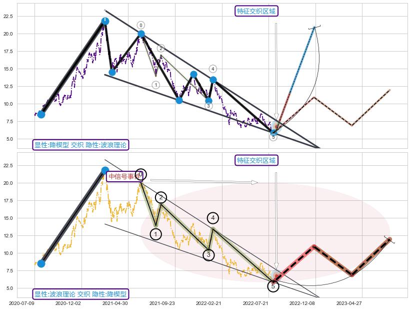 ➢ 降楔型与波浪理论信号事件周期长度级别相同,同周期信号事件