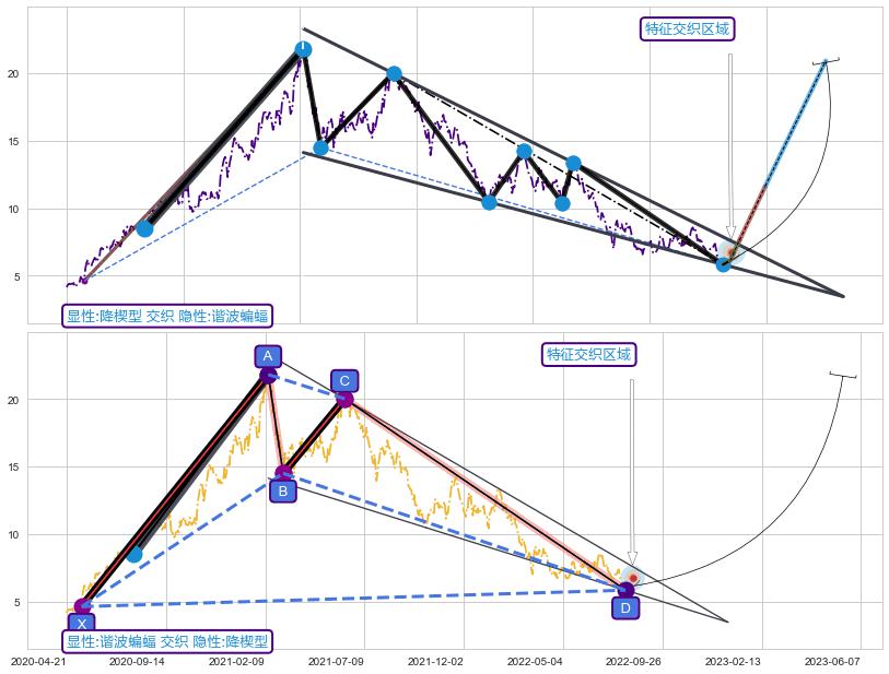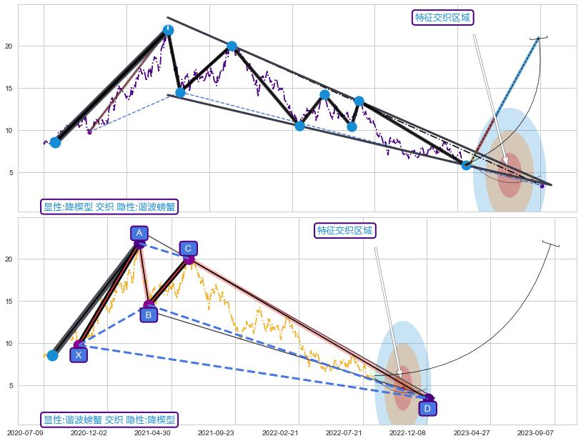 ➢ 降楔型与谐波螃蟹信号事件周期长度级别相同,同周期信号事件