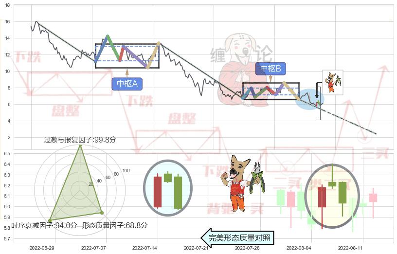 ➣ 射击之星形态 + 缠论中枢点破位中枢B支撑下拉信号叠加后【目标达成率】中等,【看空】信号叠加【存续影响中等】