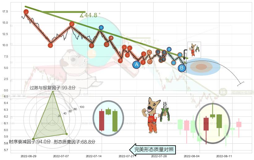 从2021-08-11至2022-08-12,共包含247个交易日,阶段股价下跌-83.45%,阶段股价变动位移路程比: 1 : 8,下跌趋势角度: 44.8