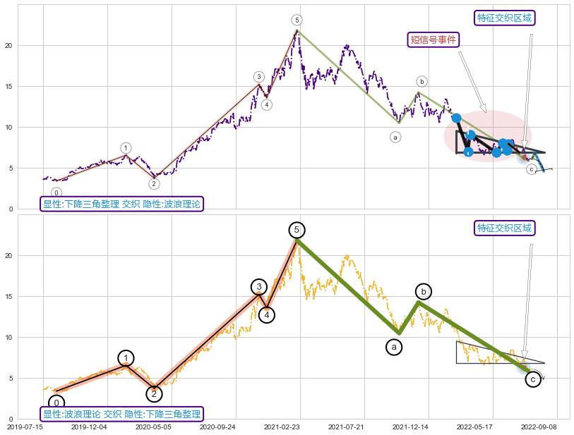 ➢ 下降三角整理属【短级别信号事件】波浪理论属【长级别信号事件】长短周期组合信号事件, 短长事件长度比13.47%