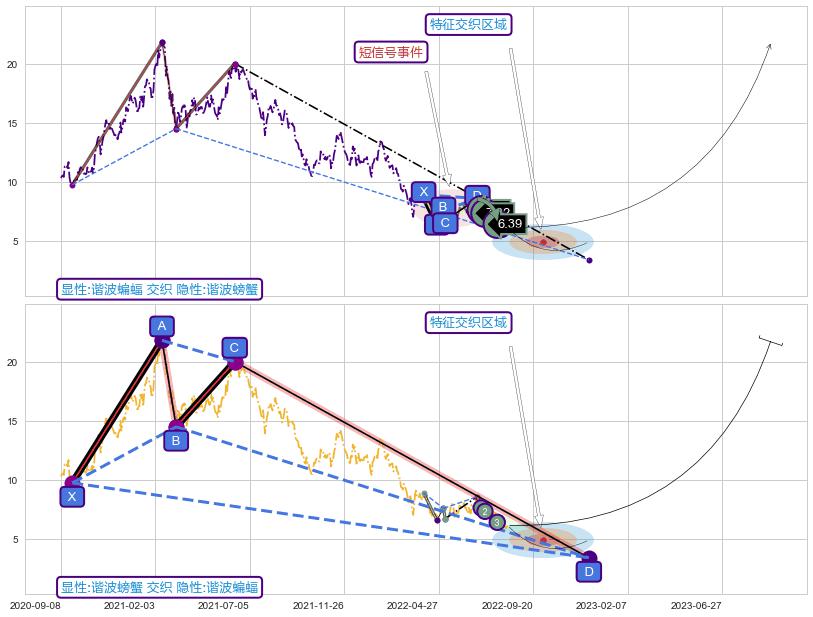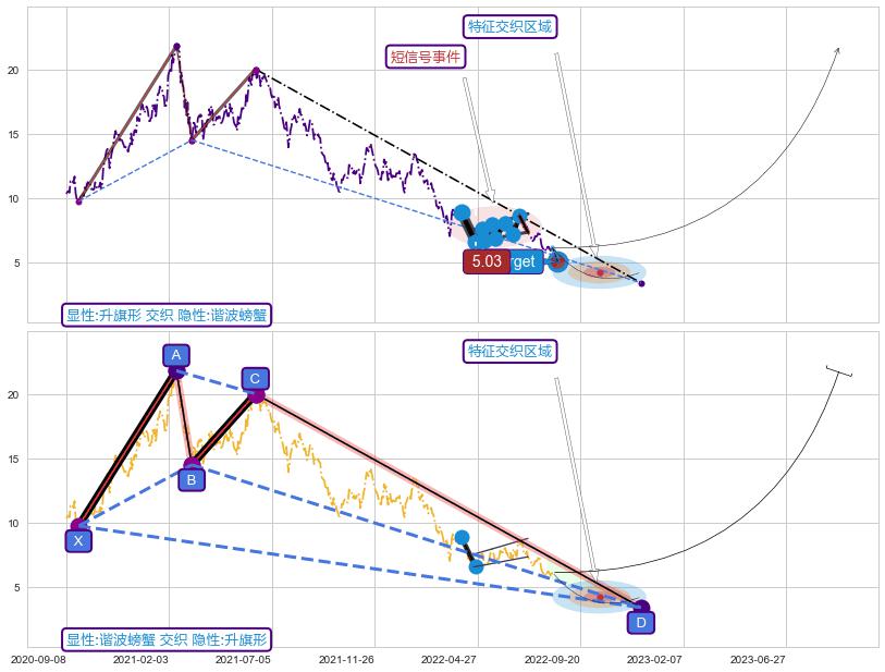 ➢ 升旗形属【短级别信号事件】谐波螃蟹属【长级别信号事件】长短周期组合信号事件, 短长事件长度比14.29%