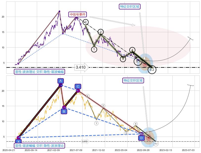➢ 谐波蝙蝠属【短级别信号事件】波浪理论属【长级别信号事件】长短周期组合信号事件, 短长事件长度比20.00%