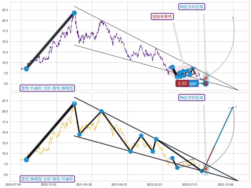 ➢ 升旗形属【短级别信号事件】降楔型属【长级别信号事件】长短周期组合信号事件, 短长事件长度比13.12%