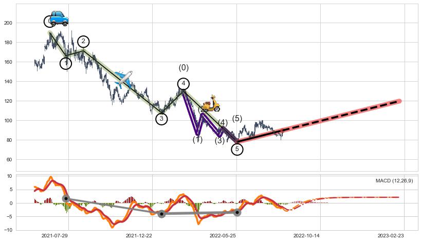 ➣ 波浪理论:猜想止跌 → 上涨 →【拐点】浪5已完成 → 大趋势均值回复